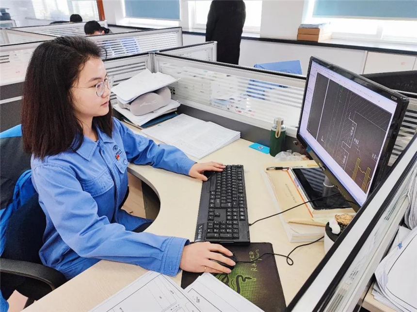 老舊小區(qū)改造是今年公司里最重要的一項(xiàng)工程,王章蕾正在專心致志地繪制著竣工圖,眼前的線條和數(shù)字,伴隨著鼠標(biāo)的咔噠聲,將青春定格在了一張張圖紙上,將理想描繪在了一個(gè)個(gè)項(xiàng)目里。
