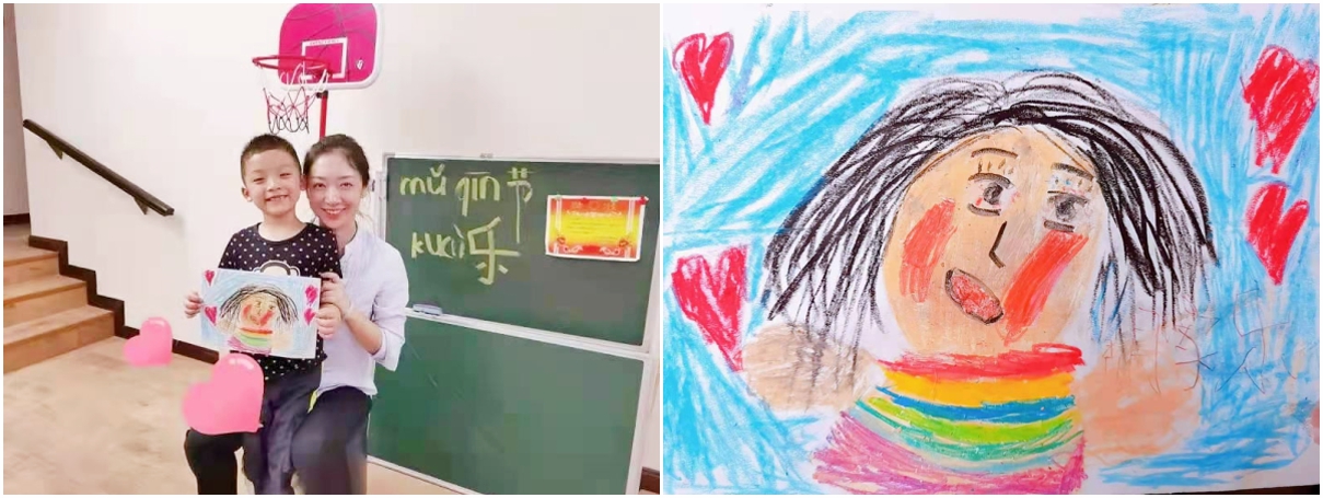 “媽媽,最美的花送給最美的你!”——高倩的女兒陸昱含