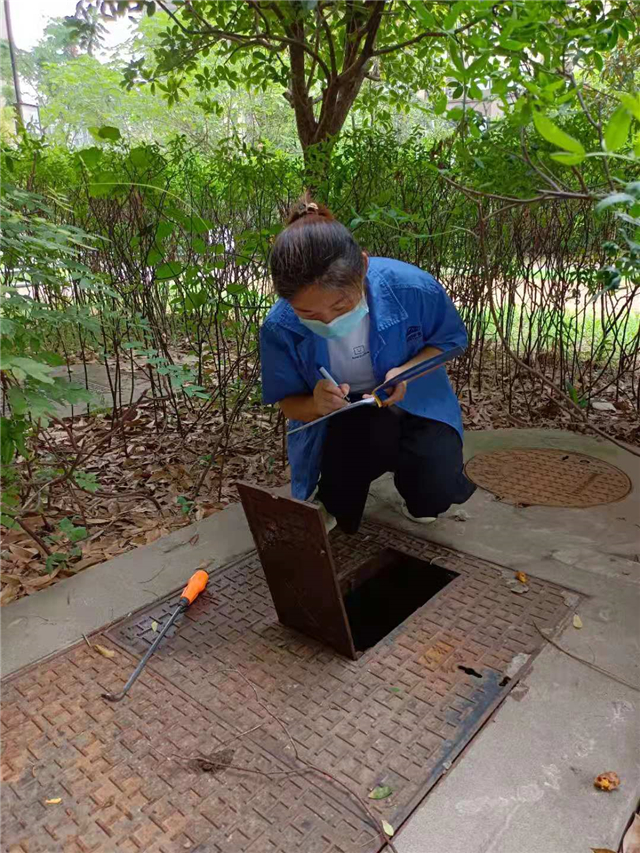 最難抄的莫過(guò)于小區(qū)的地表。由于多安裝在綠化帶當(dāng)中,蚊蟲密集,而且一般表埋較深,經(jīng)常需要打著手電筒、趴在地上才能看清表鏡上的讀數(shù)??杀M管如此,她還是每臺(tái)水表都認(rèn)真抄到位。“只有把每臺(tái)表都抄準(zhǔn)了,水量統(tǒng)計(jì)和分析才會(huì)準(zhǔn)確”,蘆佳這樣說(shuō)到。累了就稍微停下來(lái),摘下潮濕悶熱的口罩,喝口水、喘口氣,然后繼續(xù)奔赴下個(gè)樓棟。