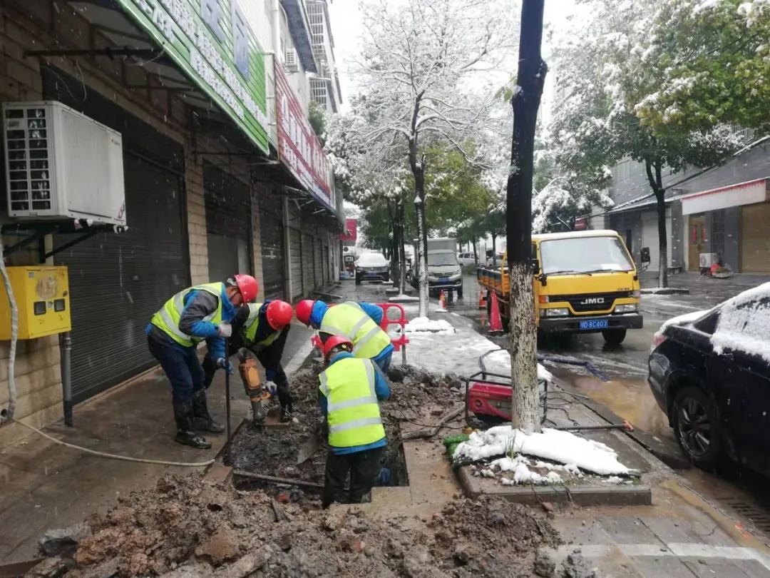 為保障居民的正常生活用水,在御河一路,管網(wǎng)部搶修員們冒著風(fēng)雪帶水作業(yè),他們滿身泥濘,雙手泡在冰水中凍得通紅。凍得發(fā)麻了,就哈口氣,搓搓手暖和一下,再繼續(xù)干。皚皚白雪中,他們顧不得身上的積雪,任憑腳下泥濘一片......