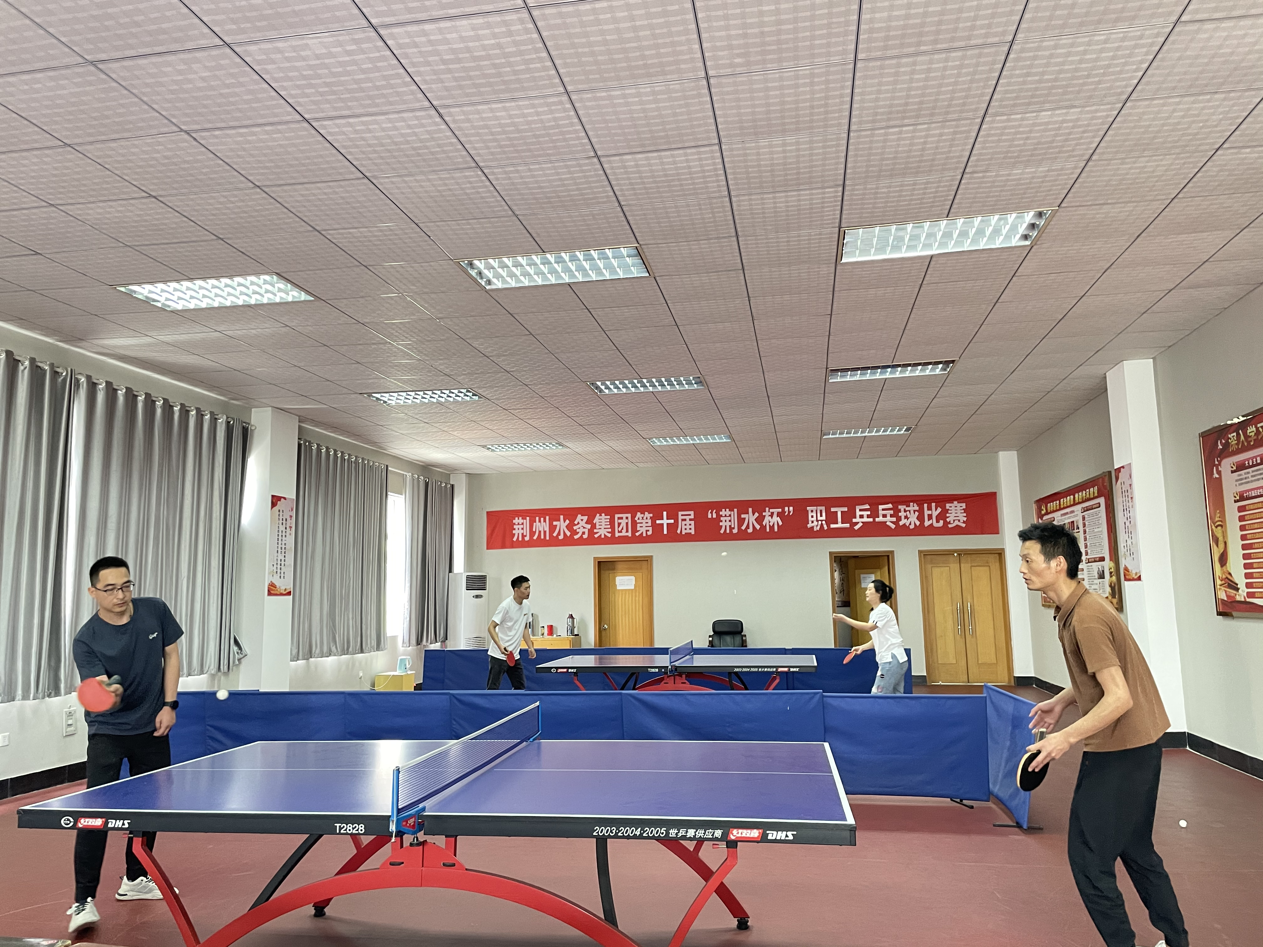 “好球”“這個球漂亮”“哈哈哈哈”……集團活動中心傳來一陣陣喝彩聲和笑聲。原來是荊州水務心泉公司同事們利用中午休息時間在集團活動中心進行乒乓球切磋。