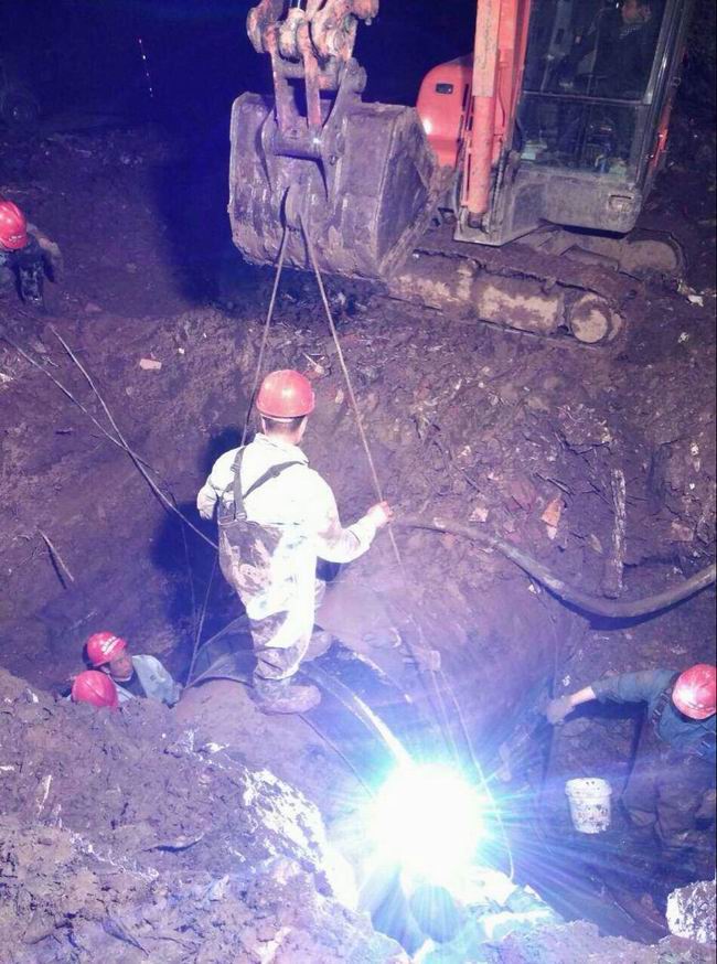 連夜搶修郢都水廠DN1200mm出廠水管道
