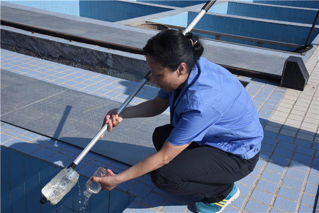 入夏以來,公司加大水質檢測力度,從平時的每天2次自檢增加到每兩小時1次,不僅對源水、濾前水、濾后水、儲藏水進行取樣檢測,還對儲藏水及清水庫澄清池的余氯進行檢測,以確保從“源頭”到“龍頭”的每一滴水衛(wèi)生、安全、可靠。