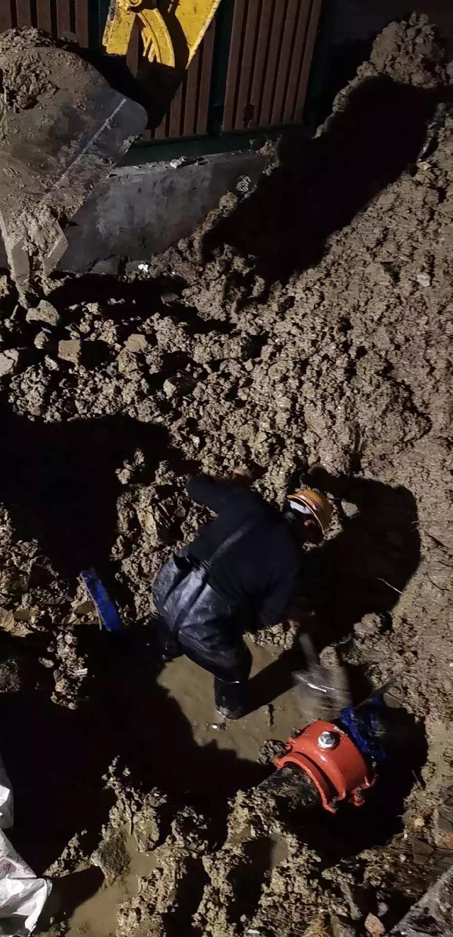19點30分,管漏余水被完全止住,帶水操作為這次管道維修大大節(jié)約了時間,搶修人員很快給管漏破損點套上“哈夫節(jié)”,漏點被完全修復(fù),晚8點30分,閘門重新開滿施工坑開始回填,搶修工作順利完成。