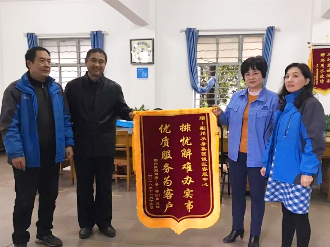 11月15日,荊州市公安局宿舍小區(qū)的周鐵來(lái)到城區(qū)客服中心,將一面“排憂解難辦實(shí)事 優(yōu)質(zhì)服務(wù)為客戶”的錦旗送到部門負(fù)責(zé)人手中,并感激地說(shuō)道:“謝謝你們!謝謝你們解決了長(zhǎng)期困擾我們的用水難問(wèn)題!”