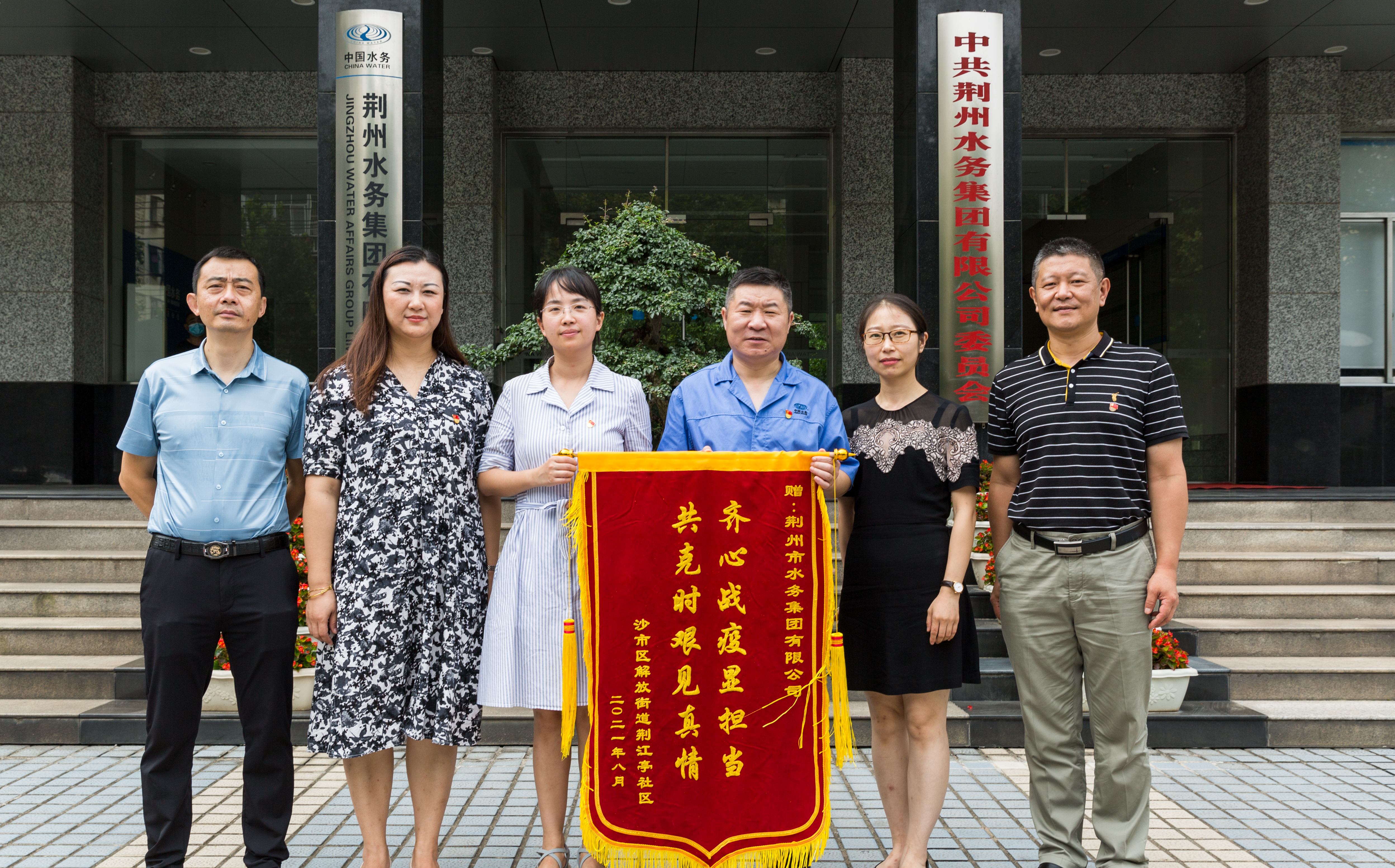 “衷心感謝荊州水務(wù)集團對社區(qū)抗疫工作的大力幫助和支持,特代表街道和社區(qū)群眾贈送錦旗,表達敬意和感謝!”8月18日上午,解放街道黨工委組織委員、街道辦副主任沈佳和荊江亭社區(qū)黨委書記、主任楊梅將一面“齊心戰(zhàn)疫顯擔當 共克時艱見真情”的錦旗送到荊州市政府國資委出資企業(yè)荊州水務(wù)集團常務(wù)副總經(jīng)理唐志國手中。