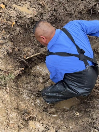 為了不影響居民的正常用水,搶修人員決定帶水作業(yè)。觀音垱供水服務(wù)站維修經(jīng)理楊敏以身作則,一馬當(dāng)先,率先跳進基坑開始搶修作業(yè)。