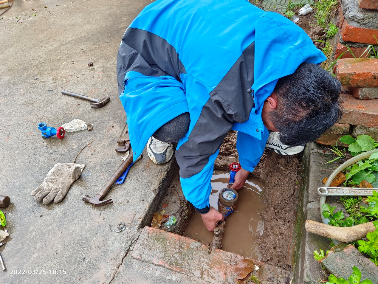 3月18日下午,灘橋供水服務站接到用戶反映,五三村一組公路南沿線停水,隨即,搶修人員火速趕赴現(xiàn)場。