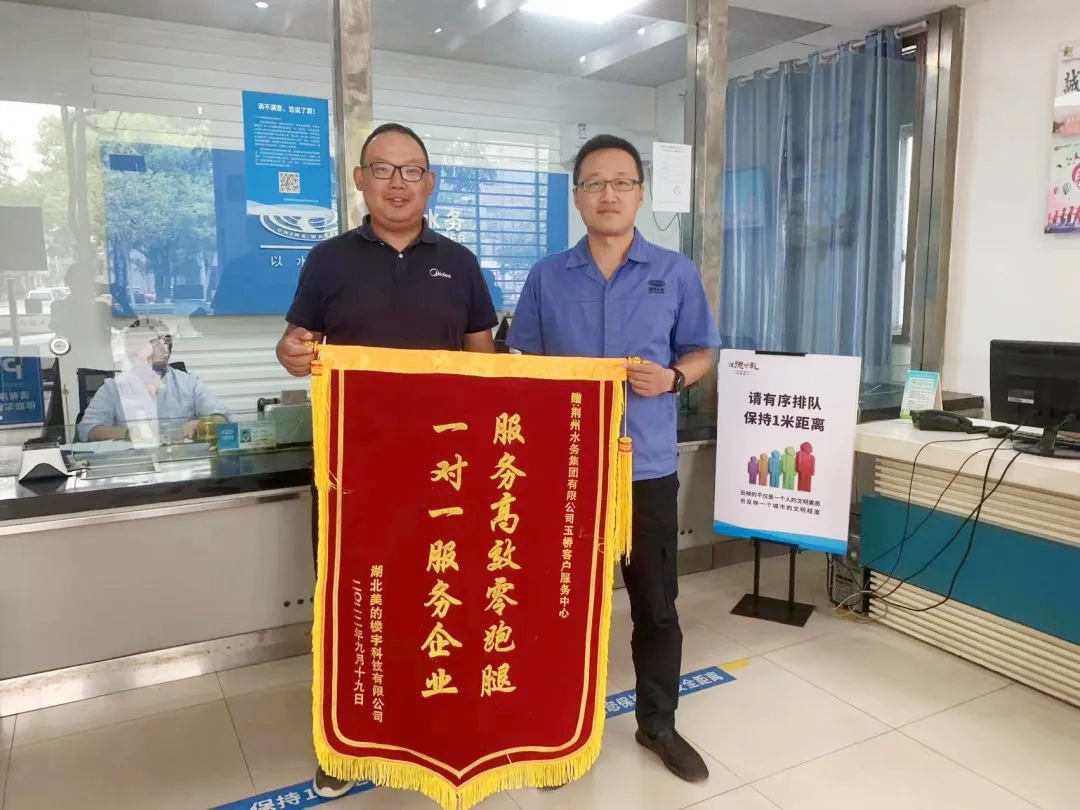 9月20日,湖北美的樓宇科技有限公司代表將一面鮮艷的錦旗送到了荊州水務(wù)集團(tuán)玉橋客服中心。“服務(wù)高效零跑腿,一對(duì)一服務(wù)企業(yè)”的話語(yǔ)醒目而亮眼,充分表達(dá)了企業(yè)對(duì)公司及玉橋客服的服務(wù)效率、優(yōu)化營(yíng)商環(huán)境的認(rèn)可和感激之情,美的樓宇科技代表激動(dòng)地說(shuō):“玉橋客服幫辦代辦的靠前服務(wù),貼心、暖情又高效,助力企業(yè)發(fā)展,真的感謝你們!”