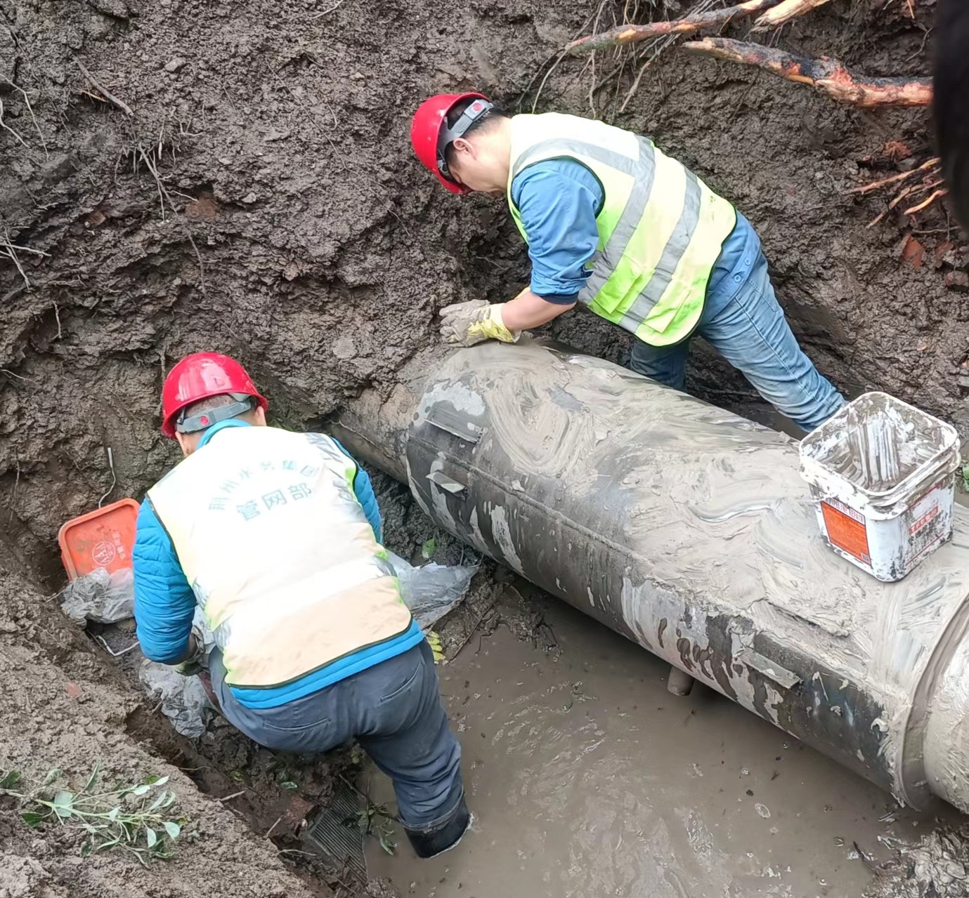 然而,搶修隊(duì)員們并沒有退縮。他們迅速制定搶修方案,分工協(xié)作,開始了緊張的搶修工作。在搶修班長(zhǎng)燕燦的帶領(lǐng)下,有的隊(duì)員負(fù)責(zé)關(guān)閉閥門,減少水流對(duì)搶修工作的影響;有的隊(duì)員負(fù)責(zé)開挖故障點(diǎn),清理管道周圍的雜物;還有的隊(duì)員負(fù)責(zé)準(zhǔn)備新管道和搶修工具。每個(gè)人的臉上都寫滿了專注和堅(jiān)定,他們的動(dòng)作迅速而有序,仿佛在與時(shí)間賽跑。