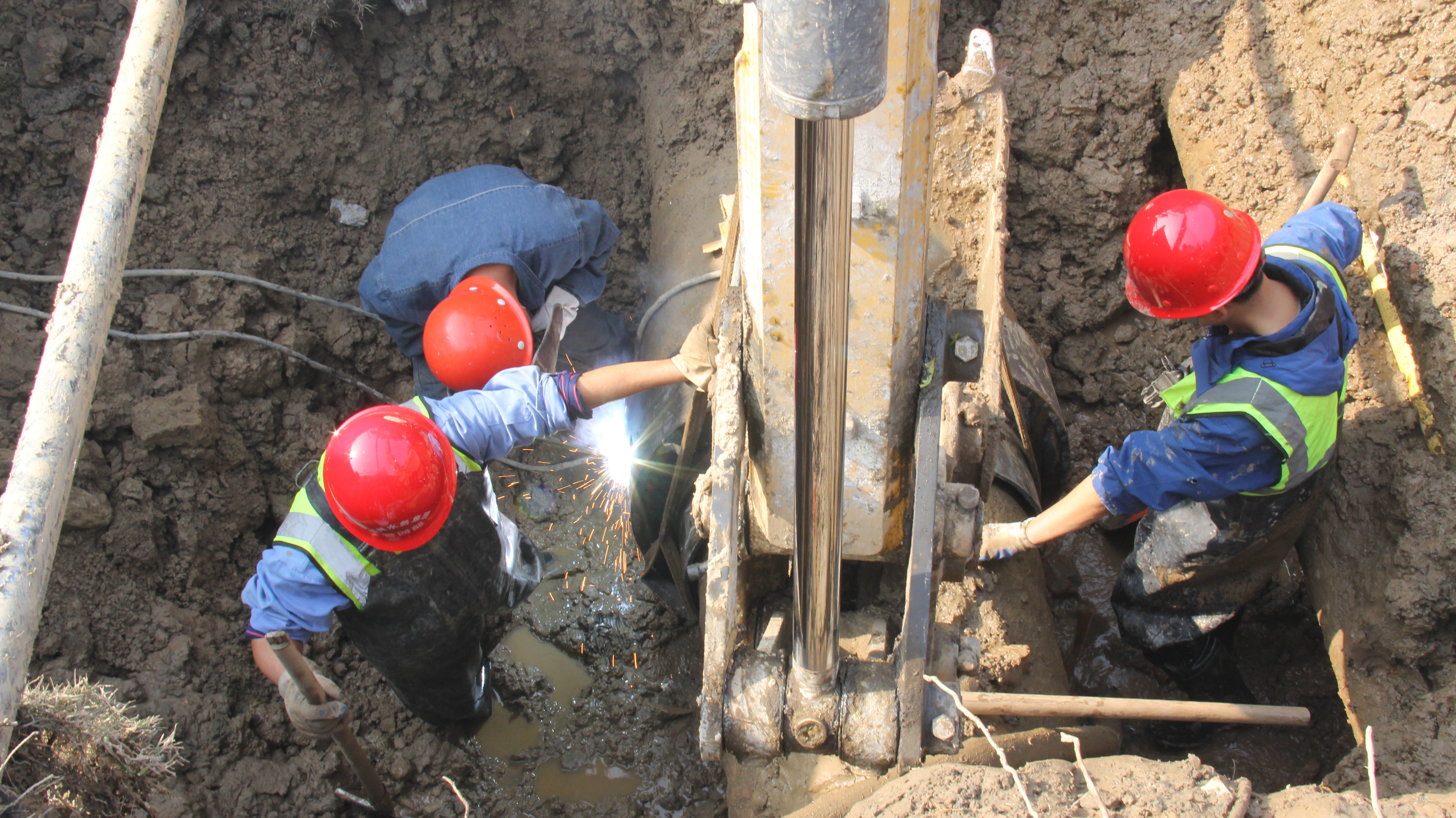 在搶修現(xiàn)場,挖掘機(jī)轟鳴作響,黃師傅和搶修員們迅速挖掘出管道,對(duì)損壞部位進(jìn)行定位。面對(duì)復(fù)雜的施工環(huán)境和緊迫的時(shí)間要求,搶修員們沒有絲毫猶豫。他們迅速分工,一部分人負(fù)責(zé)拆除損壞的管道,另一部分人則忙著準(zhǔn)備新的管道和配件。在管道修復(fù)施工的過程中,大伙小心翼翼,生怕對(duì)周圍的土壤和管線造成二次損害。同時(shí),也不忘用檢測儀器實(shí)時(shí)監(jiān)測水質(zhì)和壓力,確保搶修工作不會(huì)對(duì)供水造成太大影響。
