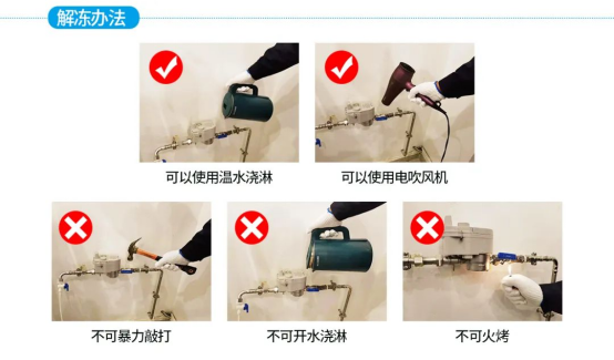 遇到直飲水設(shè)備結(jié)冰,切記不要直接用開水去澆水管,這會加速管道破裂,正確的方法應(yīng)該是:
