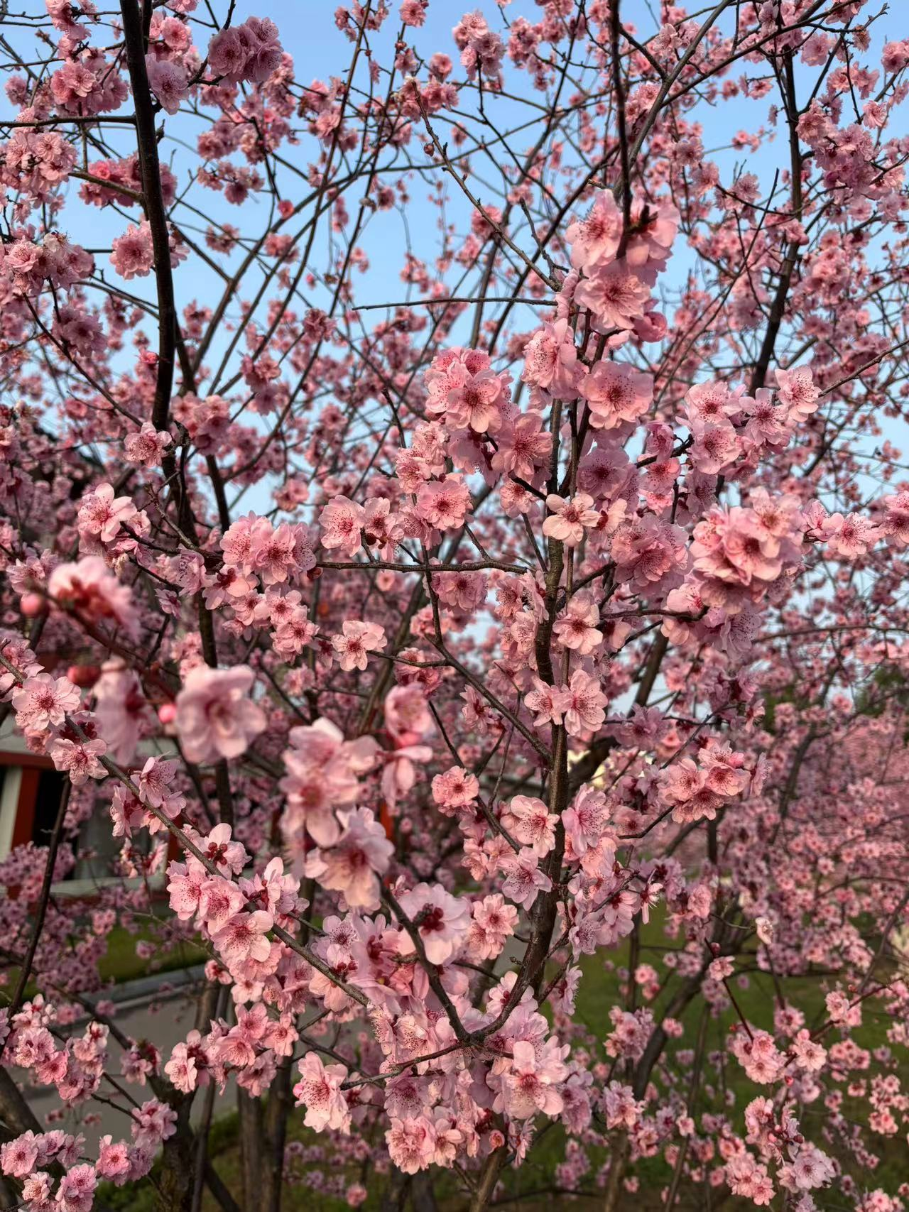 她仿佛是那“雪后初晴”的江南女子,那一襲粉裙被春風吹得輕輕飄動,宛如仙女下凡。那清純而淡雅的美,令人陶醉。每一朵美人梅都是那么嬌艷欲滴,卻又帶著幾分矜持與高傲。她們在枝頭傲然挺立,仿佛在向世界展示自己的美麗與自信。