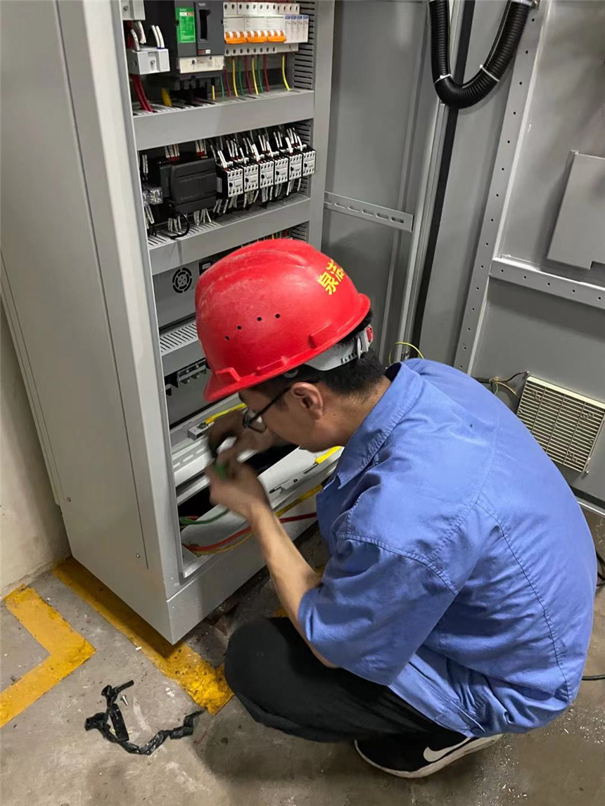 考慮到該酒店的經(jīng)營性質(zhì),在凌晨12點前用水需求量大,如果停水會造成諸多不便。又因該酒店二次供水加壓設(shè)備老化,故障不斷,產(chǎn)品急需更新?lián)Q代,為此我們?nèi)獫嵐緸樵摼频暝O(shè)計了一套符合它水泵機組工作性能的智能控制系統(tǒng)。在當天晚上11點,我們工程技術(shù)人員們克服白天忙碌工作的勞累,加班加點搬運控制柜到該酒店,更換了它的老舊線路,重新走線,并完成設(shè)備的調(diào)試工作。接下來等待水箱排水再進行水箱清洗消毒工作,在這過程中,泉潔的工程技術(shù)人員們一刻不曾離開,一直堅守在工作崗位,確保了清洗人員安全,水質(zhì)安全和進水安全。直到水箱進水完成后,開始檢查浮球是否工作,防止漏水事件發(fā)生;最后對新設(shè)備進行運行檢查,保證能夠正常供水工作后,他們才放心地離開。出了地下室,才發(fā)現(xiàn)天已經(jīng)亮了,不管工作條件多艱苦,他們都會義無反顧地往前頂,這可能就是作為泉潔人職責所在。