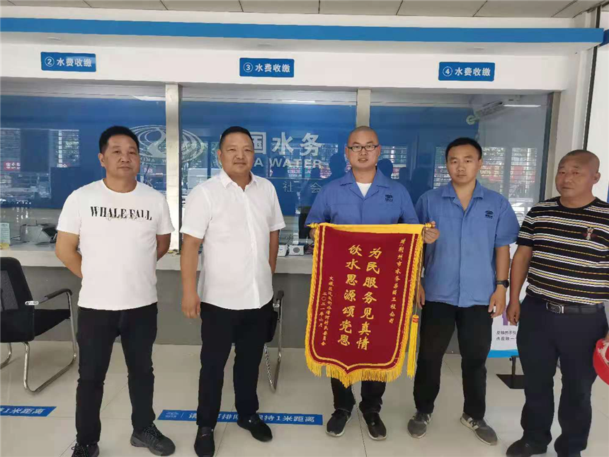 金字相間的“錦旗”既是肯定,更是鞭策。在今后的工作中鼎鑫源工程公司將再接再厲,深化服務(wù)措施,提高服務(wù)意識,提升服務(wù)質(zhì)量,繼續(xù)發(fā)揚(yáng)“上善若水·情潤萬家”的品牌精神,為市民提供安全優(yōu)質(zhì)的供水服務(wù)。