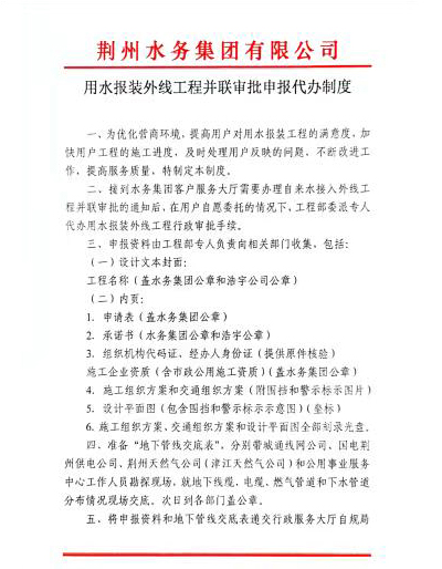 用水報(bào)裝外線工程并聯(lián)審批申報(bào)代辦制度
