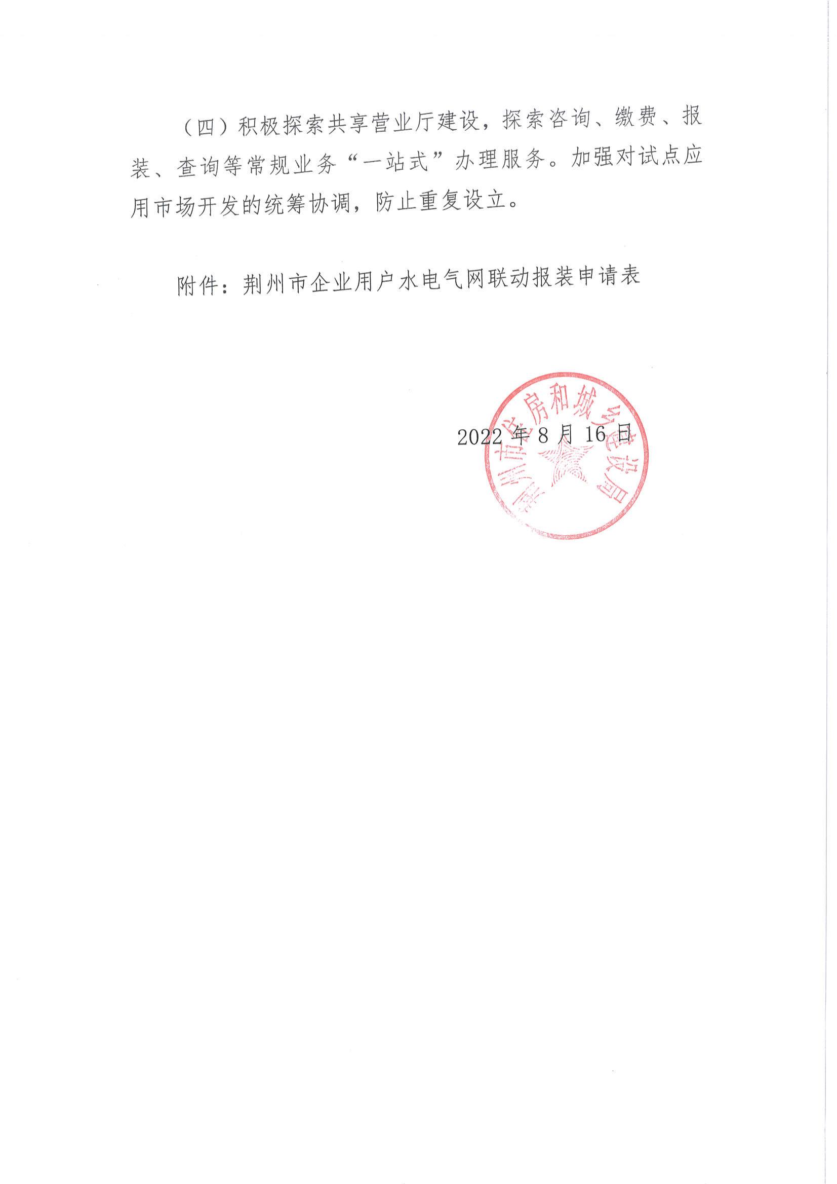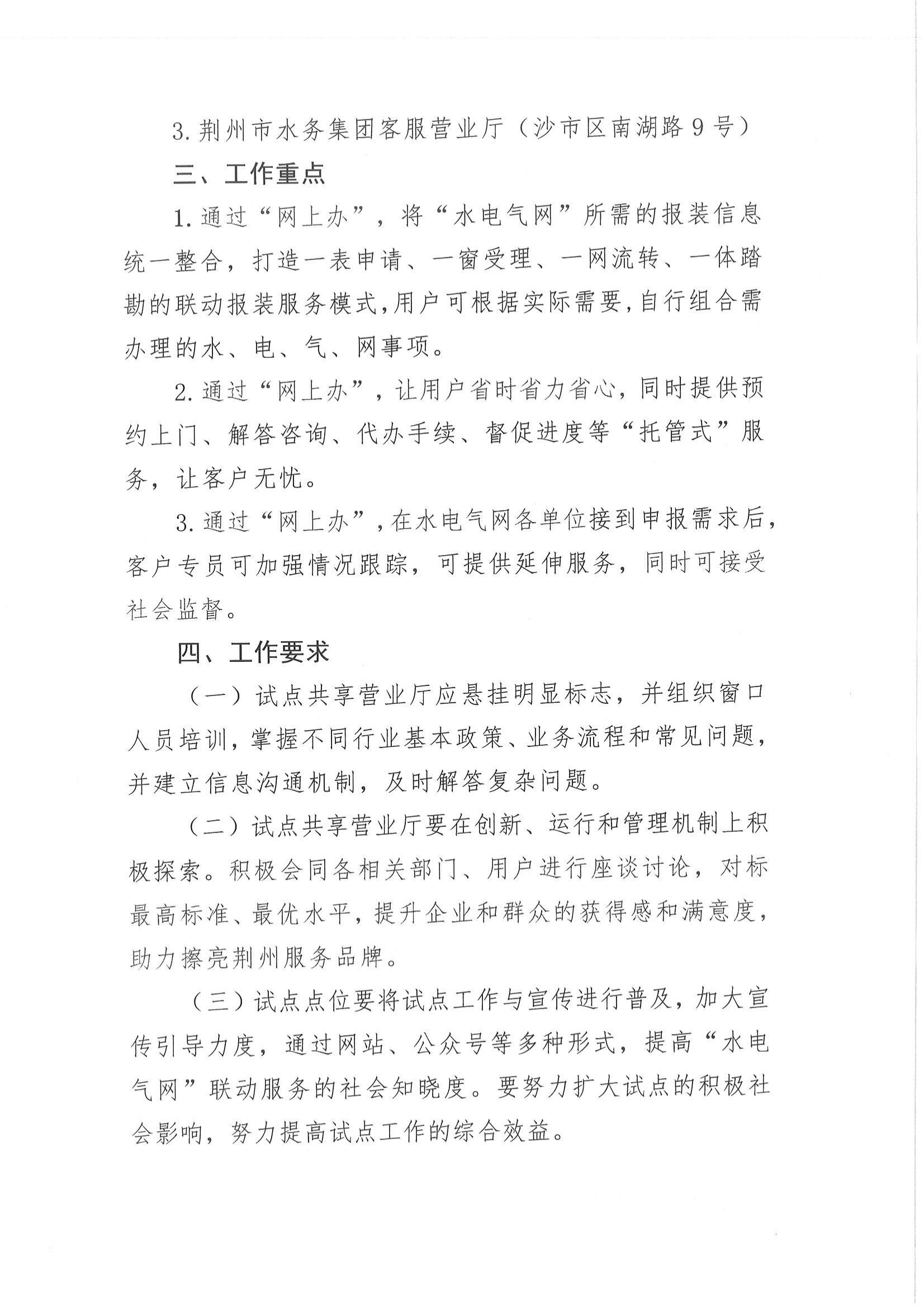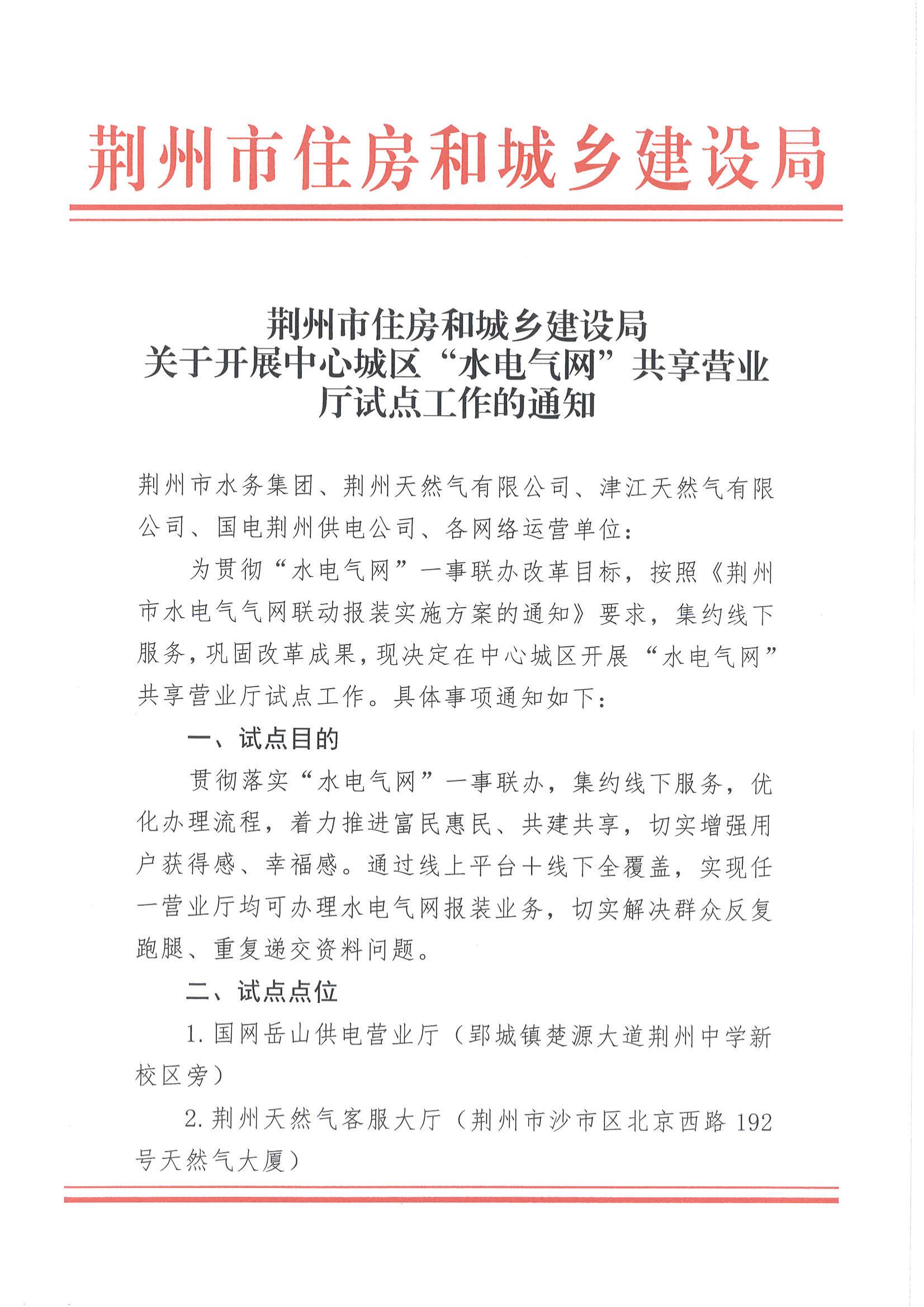 荊州市住房和城鄉(xiāng)建設(shè)局關(guān)于開展中心城區(qū)“水電氣網(wǎng)”共享營業(yè)廳試點(diǎn)工作的通知