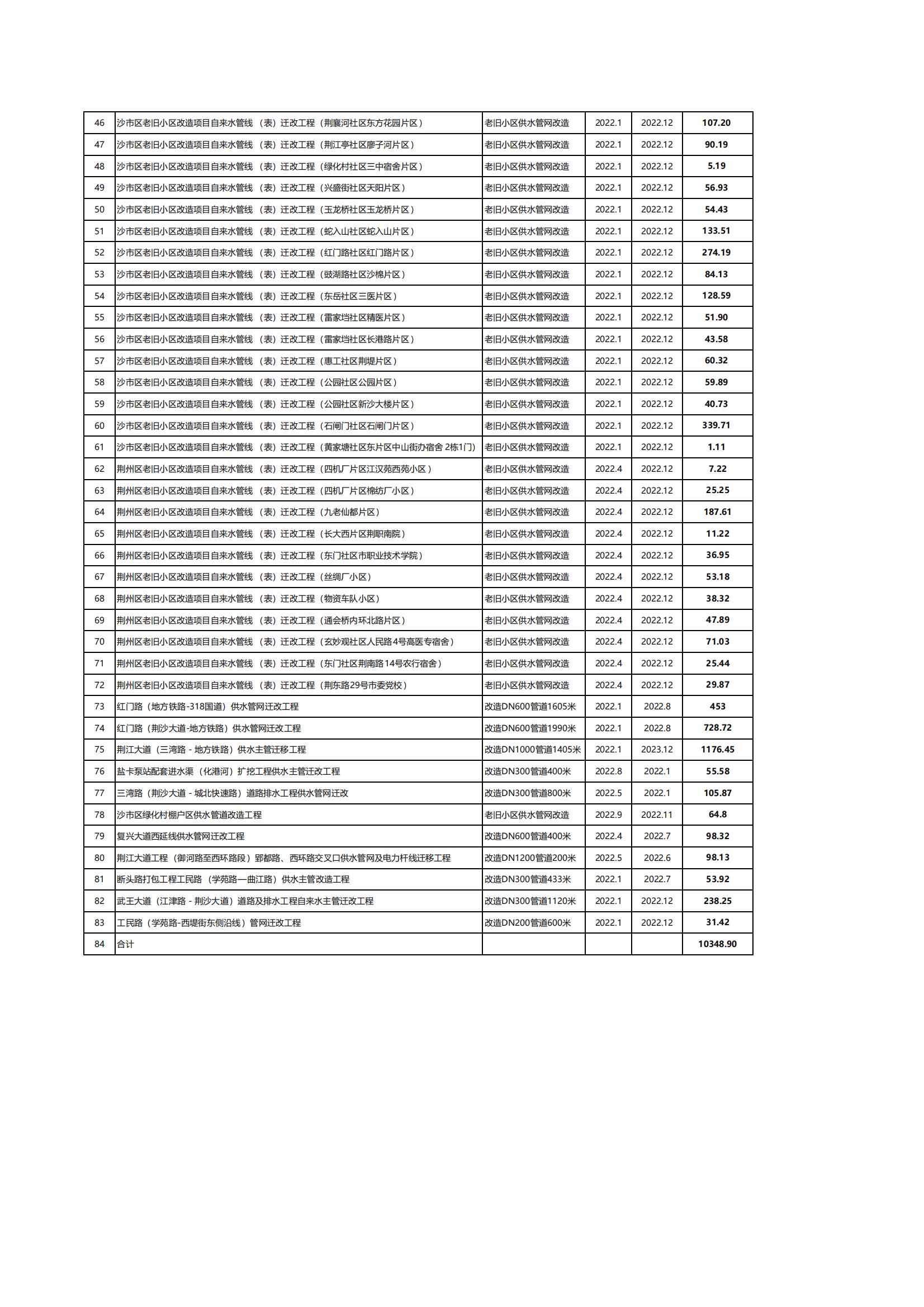 2022年荊州市供水管道更新改造計劃表
